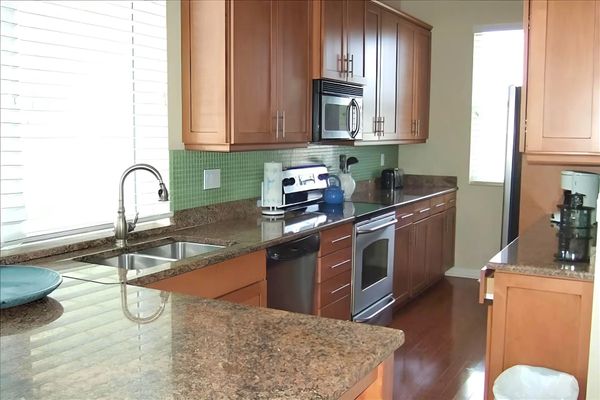 Gorgeous home, two private balconies to relax on. Single car Garage for car and driveway for extra parking; There is a storage, beach chairs, beach wagon, beach towels in garage. Fully equipped Kitchen with Refrigerator, Stove, Microwave, dishwasher, garbage disposal, dishes, pots & pans. TV with cable, DVD player. Washer & Dryer, plenty of towels, bedding, supply of starter supplies. Main bedroom has a private bath area, with King size bed and TV in the room. Private Pool and jacuzzi, and BBQ area, with direct access to the beach.