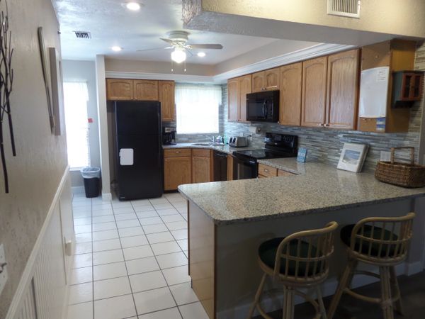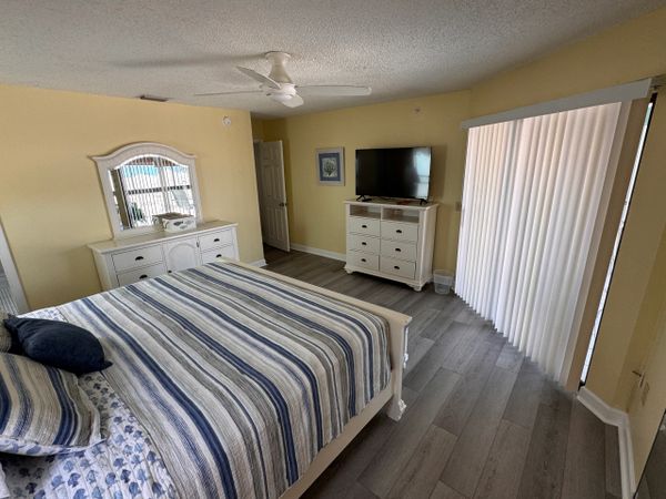 Gorgeous unit, two private balconies to relax on. No Garage for car but Carport area under building. There is a storage, beach stuff, also parking on the side of the building. Fully equipped Kitchen with Refrigerator, Stove, Microwave, dishwasher, garbage disposal, dishes, pots & pans. TV with cable, DVD player. Washer & Dryer, plenty of towels, bedding, supply of starter supplies. Main bedroom has a private bath area, with King size bed and TV in the room. Community Pool, and BBQ area, with direct access to the beach.